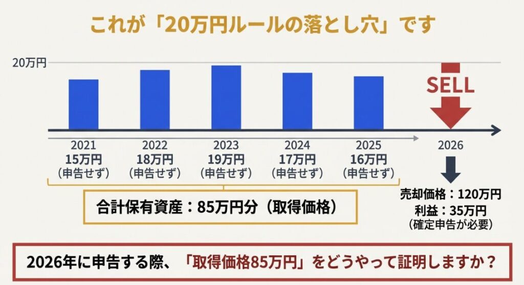 数年後の利確時、その油断が思わぬ課税トラブルにつながることがあります。